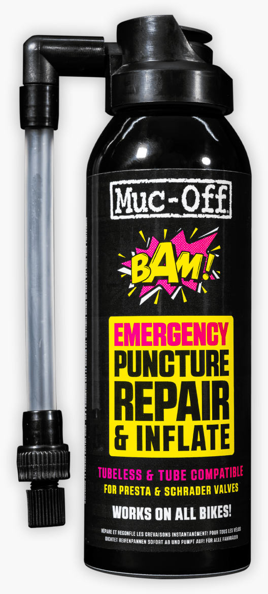 B.A.M quickly inflates and repairs punctures at the same time by injecting latex foam and air into a tyre or tube. B.A.M is the perfect emergency backup that can be strapped to a bike frame using the Muc-Off B.A.M Utility Belt (sold separately) or carried in a ride pack. Compatible with road, cx/gravel and MTB wheels as well as most tubeless sealants. Will inflate a 29” MTB tyre in under a minute and capable of sealing holes 3-4mm.